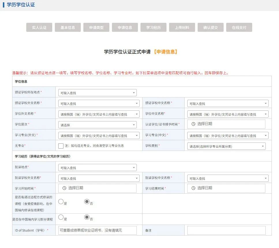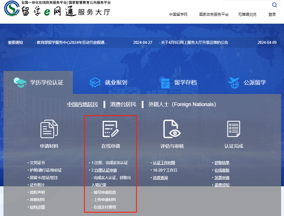 学历学位认证在线申请网址: