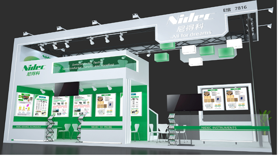 尼得科精密检测科技展出了用于IGBT/SiC的功率半导体检测设备、用于EV/HEV等驱动电机的测试台以及其子公司SV Probe开发制造的晶圆检测治具“探针卡”等最新解决方案。
