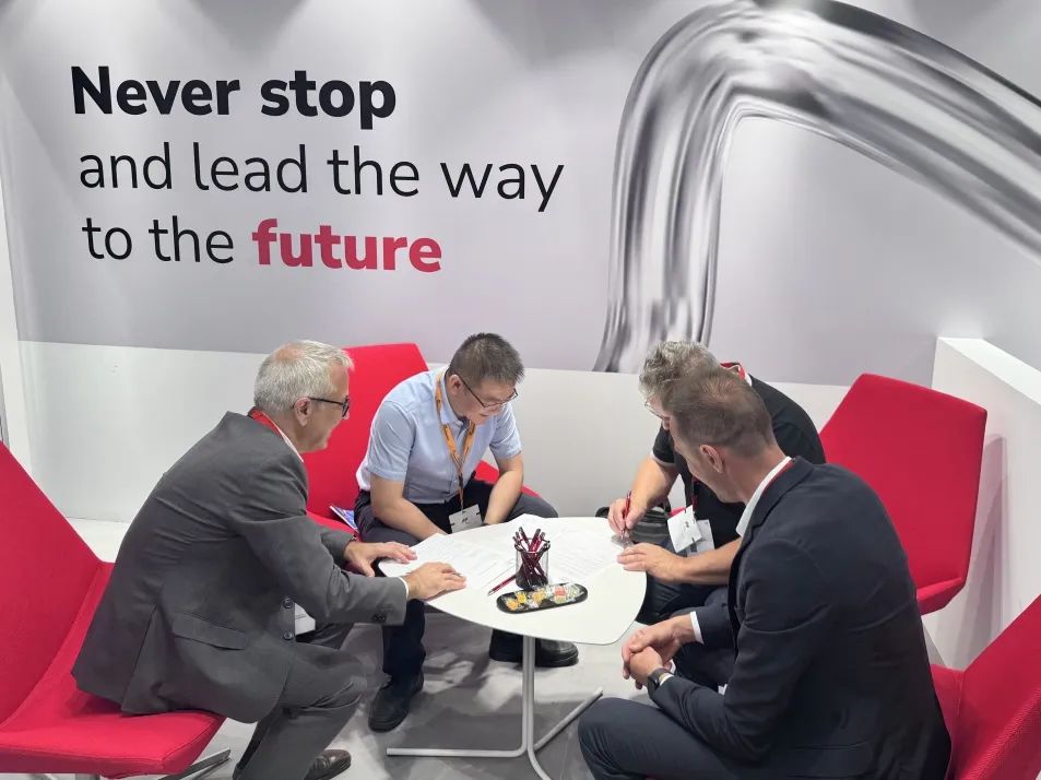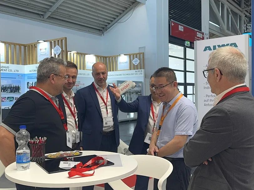 展会期间,埃夫特董事长兼总经理游玮博士与多国企业代表展开深度交流。