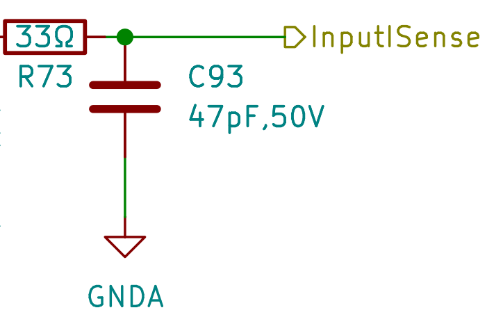 开发板上共有四路模拟信号供ADC采样,每路ADC均在管脚较近处放置了RC电路,对于SAR-ADC,紧贴管脚的RC电路是必须的,因为其内部采样电容在开启瞬间会造成外部电压跌落,如果没有RC中的C提供足够的电容补偿跌落,将会导致采样结果波动极大,而RC中的R是防止跌落的电压信号反冲到前级运放造成震荡,RC共同构成了SAR-ADC前级的一部分,而不只是低通滤波器。