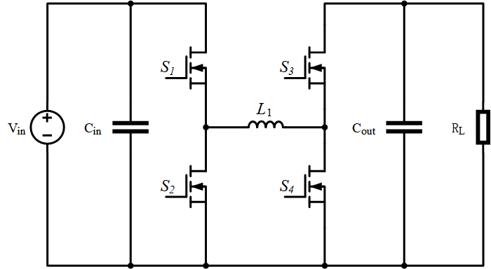 四开关BuckBoost变换器,是一种兼具升降压能力的非隔离DCDC变换器,通过不同的开关组合导通控制实现电