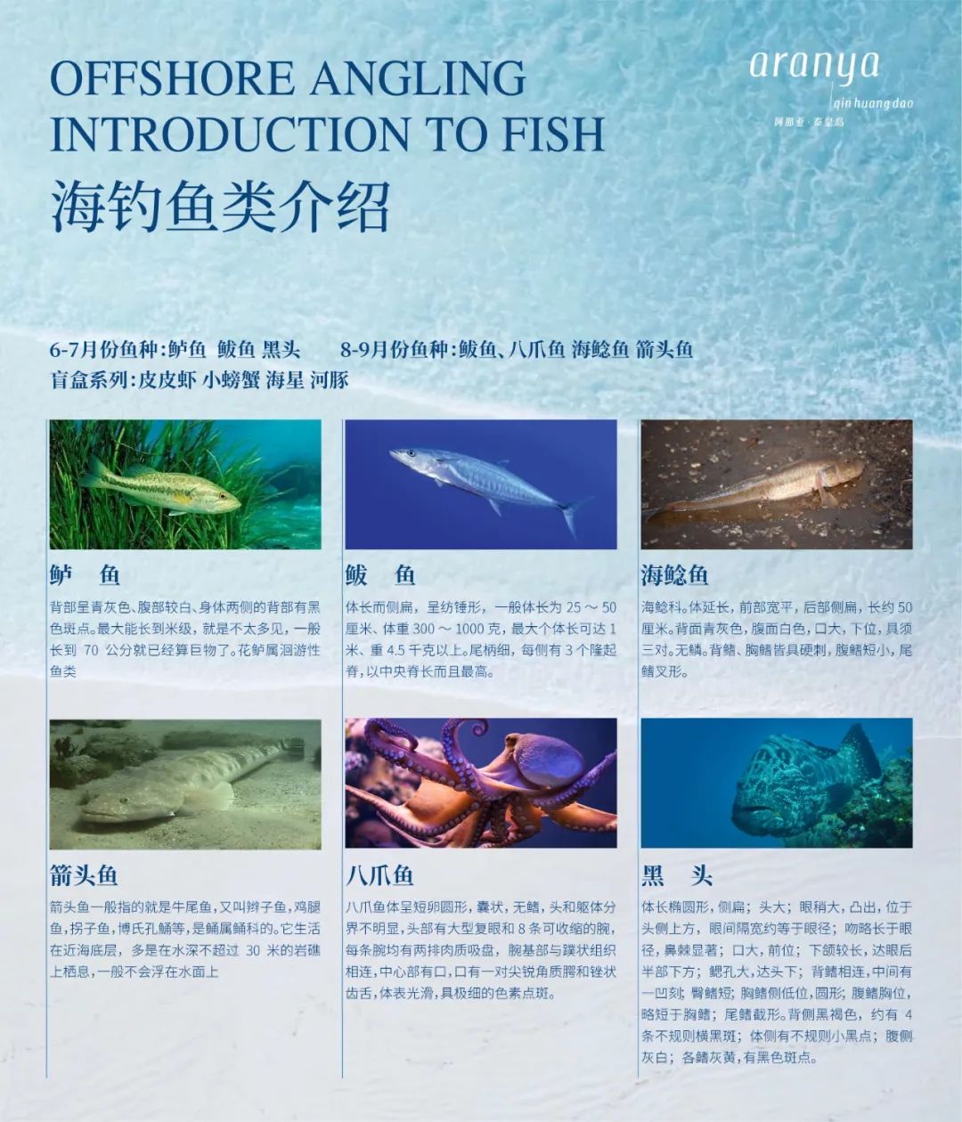 海钓的趣味藏在每一次抛竿的期待里:静看波光粼粼的海面,专注竿梢的细微颤动,当鱼线突然紧绷,一场与大海的「博弈」就此开始——是敏捷的鲈鱼在试探,还是肥美的鲅鱼在挣扎?每一次收线,都是未知的惊喜,在垂钓鱼类之余,还有机会邂逅皮皮虾、小螃蟹、海星、河豚等可爱生物,海洋盲盒等你来“开”。