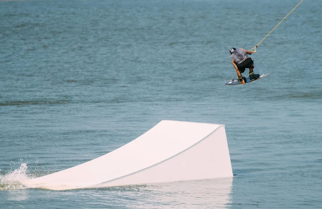 滑水玩家可选择穿着“水鞋/水橇”,借助索道动力的牵引,在水面上完成花样、回旋、跳跃、尾波、跪板、竞速、赤脚等项目,既可感受高速滑行的刺激,又能体会「翻、转、跳、跃」的多重乐趣。索道滑水运动公园现已推出全天畅玩次卡(可多人使用),满足全家戏水需求。