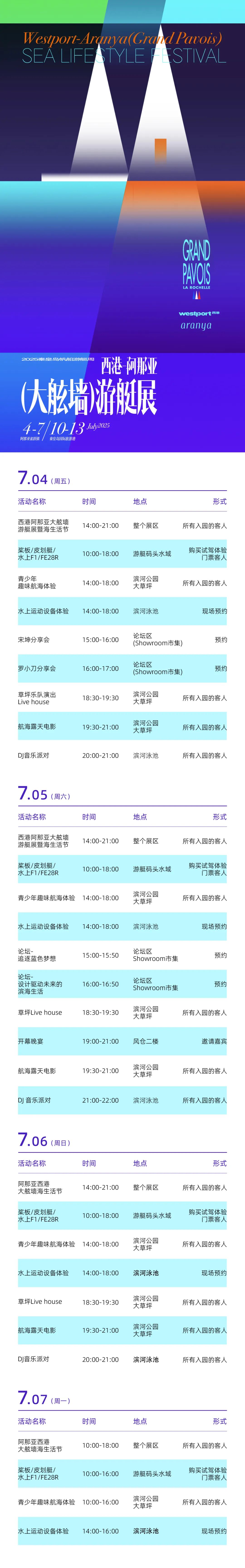 届时,西港Grand Pavois游艇展将呈现丰富的游艇航海生活展区、航海生活方式展区、水上体验运动赛事、航海传奇人物分享、河畔市集派对&文艺慢闪等多元体验。