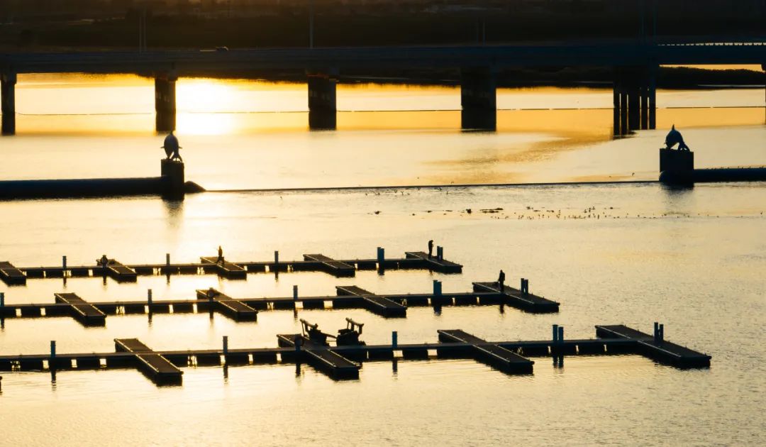 当落日余晖洒在河面,北岸雀跃镇的松弛氛围将充盈水畔:席地而坐,听一场草坪LIVEHOUSE,让音乐随晚风流淌;以晚霞星空为背景,看一场航海主题露天电影,在blue hour探寻海的故事,精彩纷呈的艺文体验打开河海生活的浪漫想象。