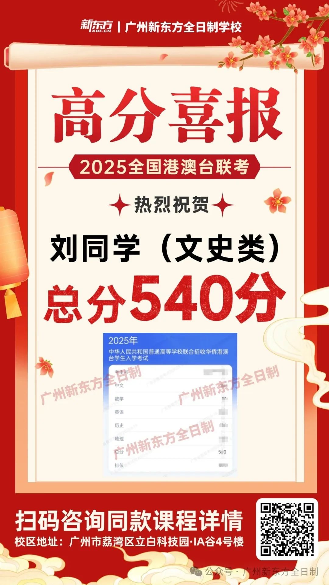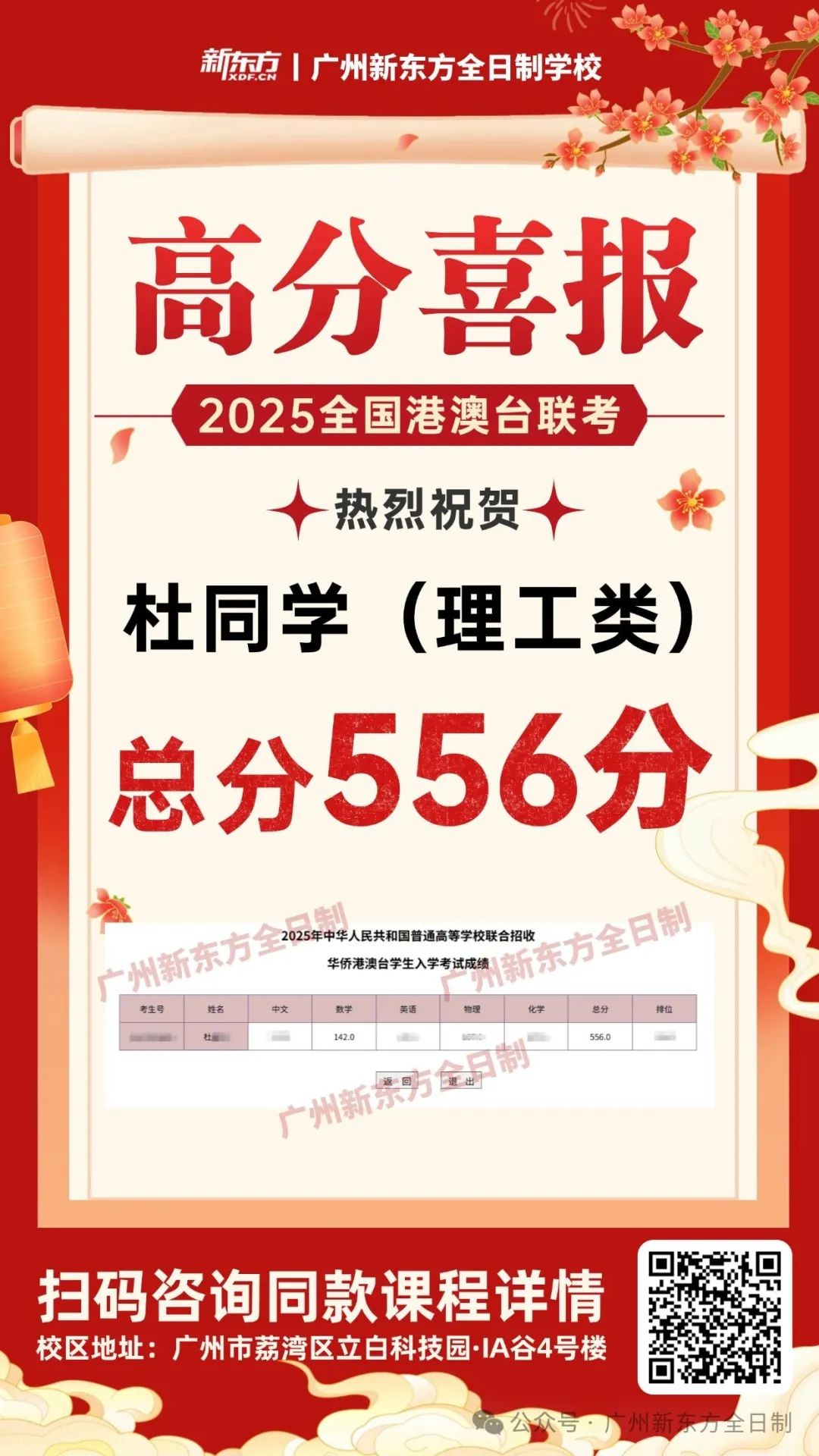 广州新东方港澳台全日制学校,也将持续关注大家的录取动态,期待每一位同学都能踏入理想学府!