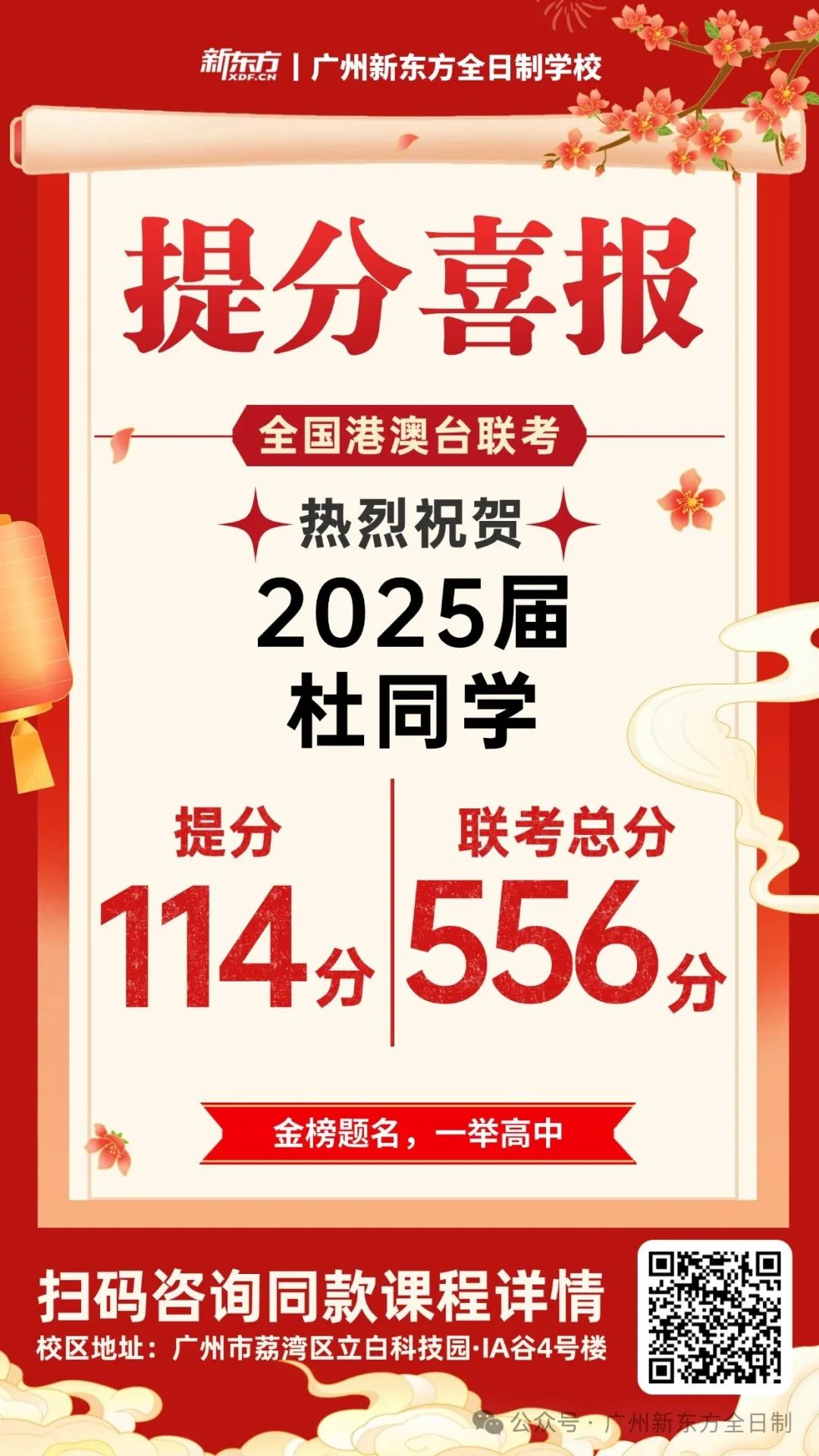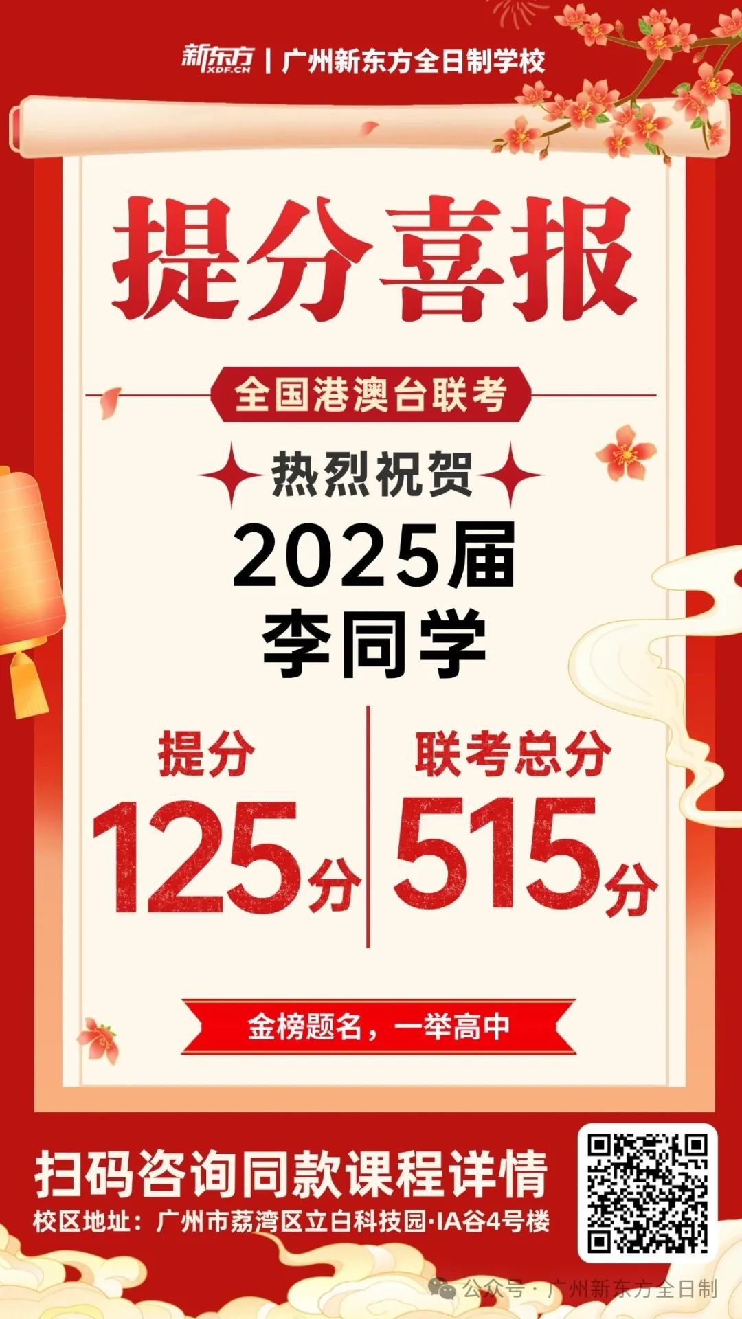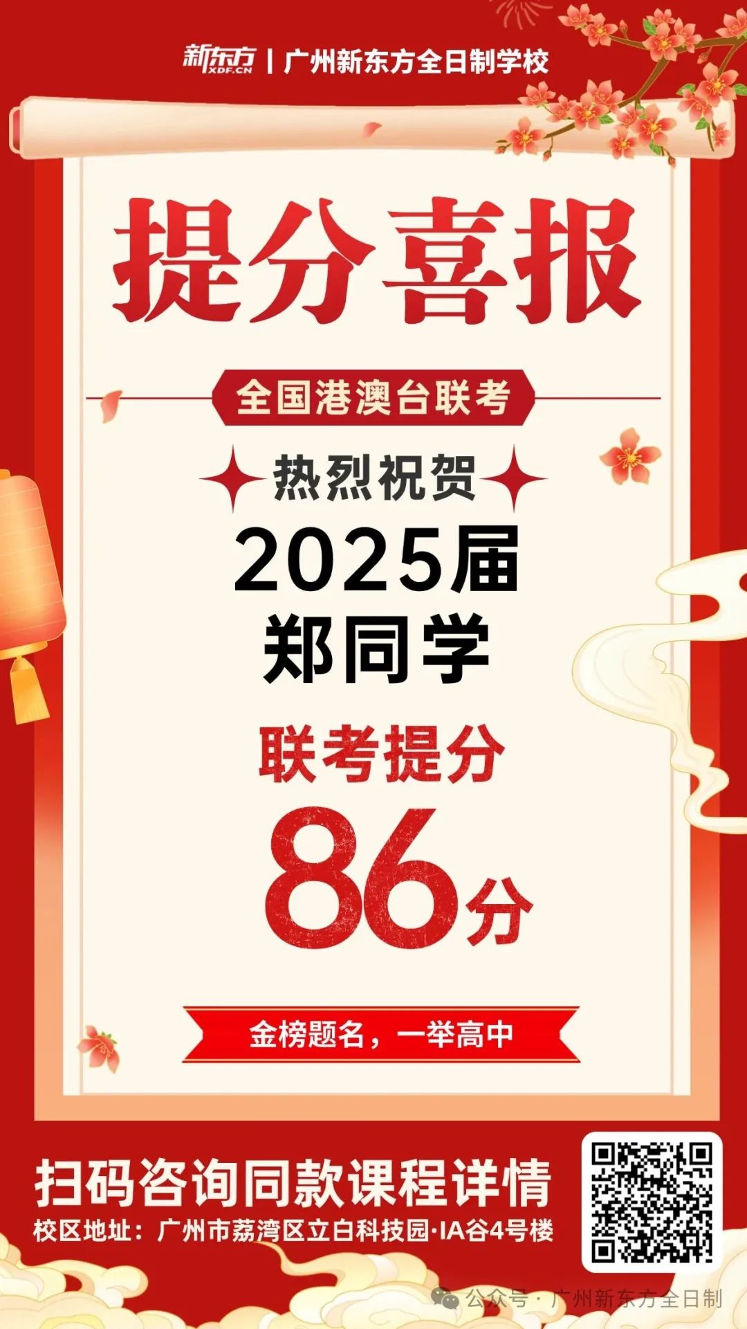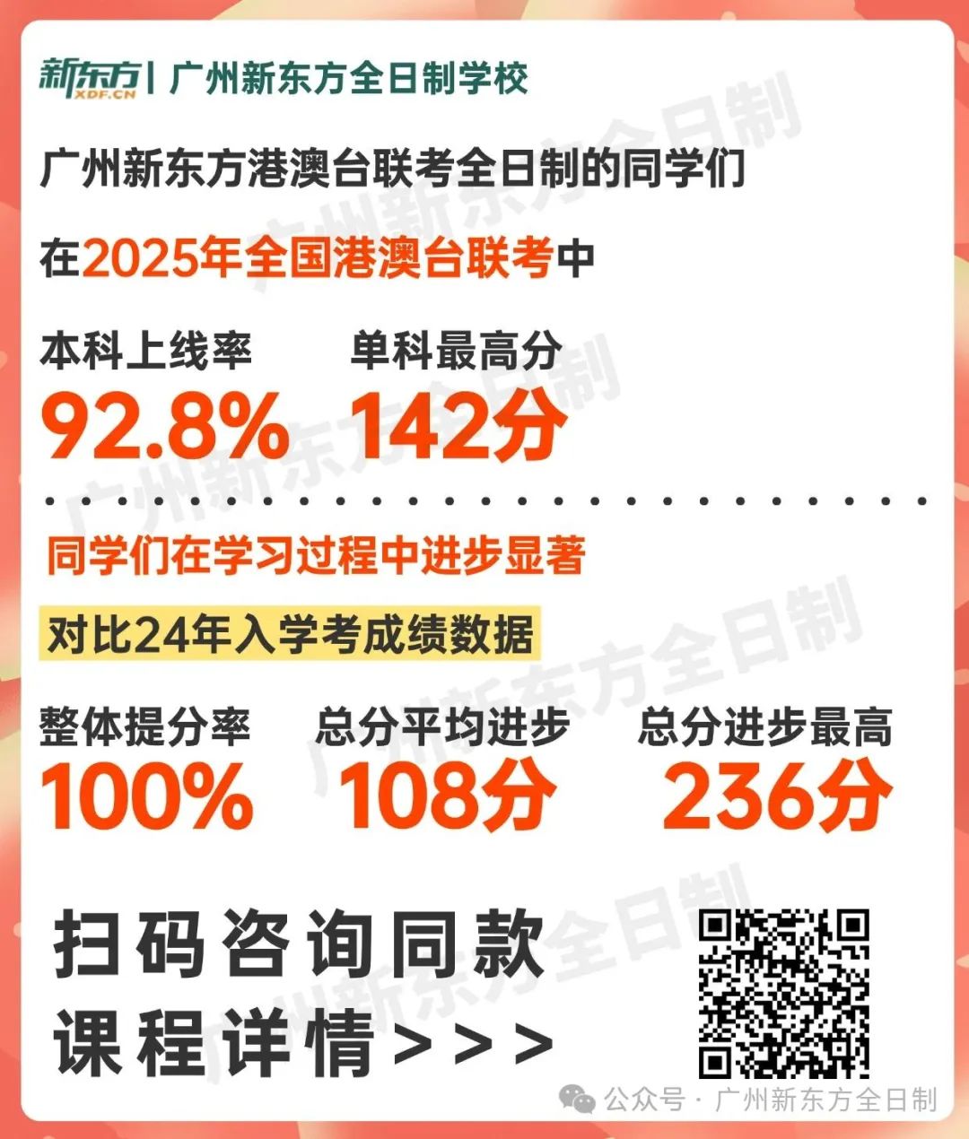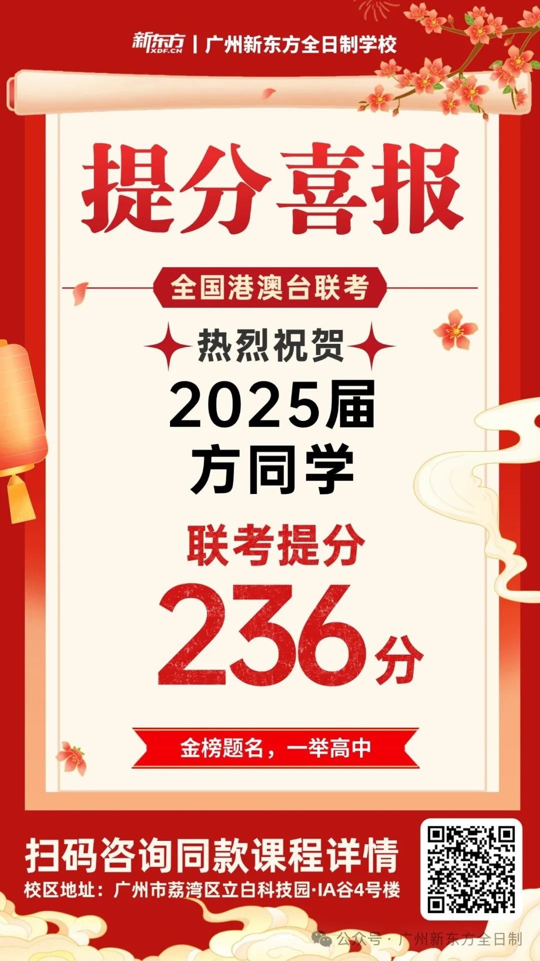 喜报!广州新东方港澳台提分率高达100%!最高提分236分!