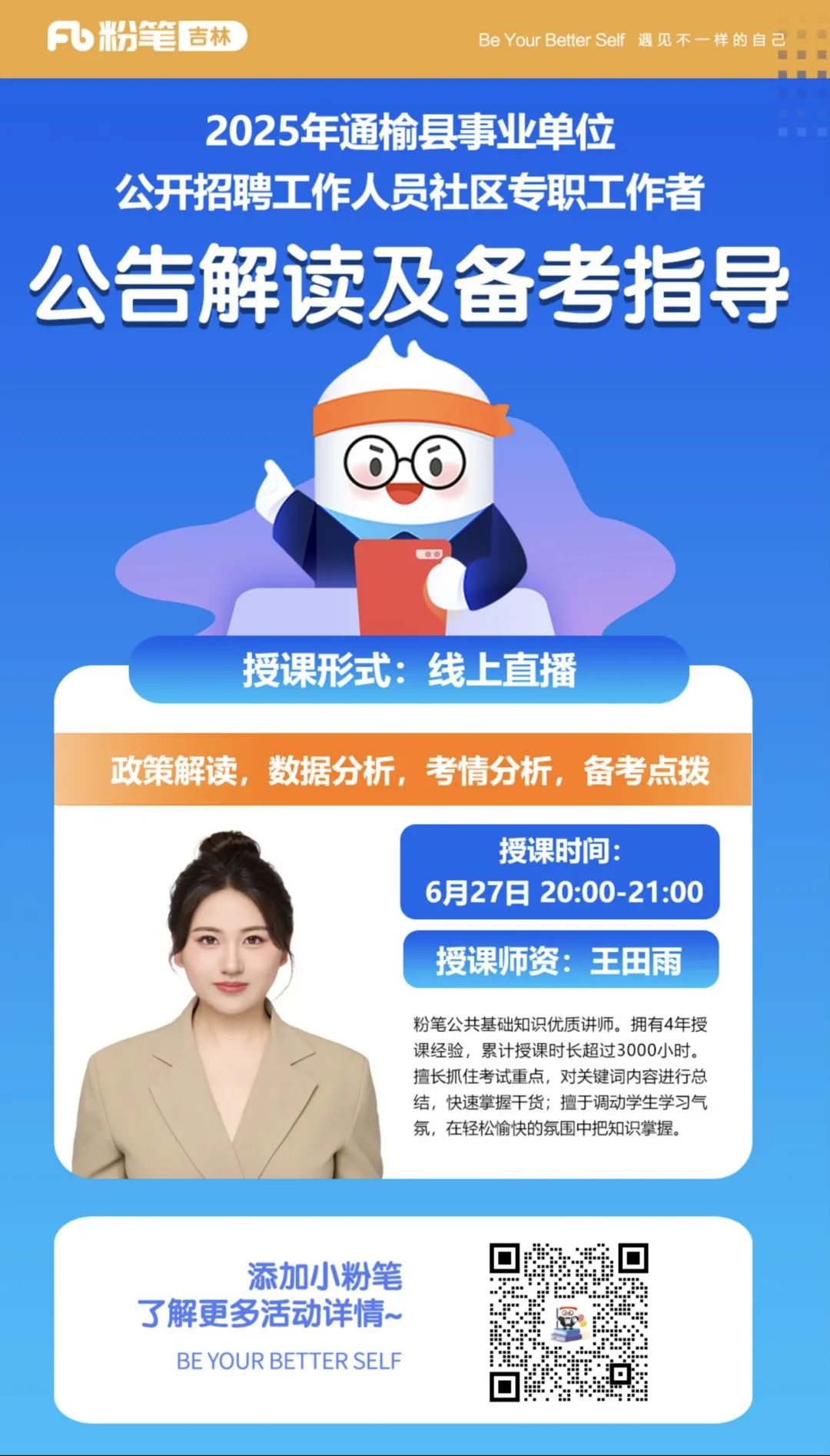 为满足我县部分事业单位用人和贯彻落实习近平总书记关于“建设一支素质优良的专业化社区工作者队伍”的重要指示精神,根据《事业单位人事管理条例》《关于认真做好2025年度全省事业单位公开招聘工作的通知》《关于进一步夯实社会治理基础提升城市社区治理能力的若干意见》和《关于进一步加强全省城市社区专职工作者队伍建设的意见》的通知精神(吉办发[2020]18号)等相关文件规定,经通榆县委、县政府研究决定,通榆县事业单位面向社会公开招聘工作人员(含专项招聘高校毕业生)和面向社会公开招聘城市社区专职工作者岗位(以下简称“社工岗”)。现将有关事宜公告如下: