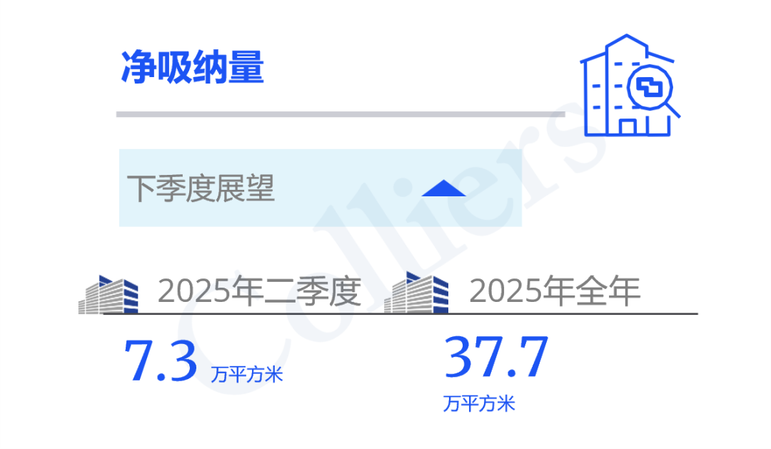 2025年第二季度,上海写字楼市场租赁需求明显回暖。但今年上半年累计净吸纳量创2020年以来同期最低水平;在优质项目持续入市的背景下,空置率与租金短期内仍将承压。建议业主精准把握企业需求,探索新的发展模式。