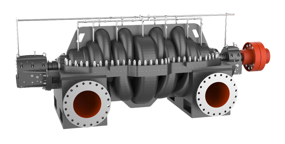 GSX型高效单级双吸离心泵是我公司在广泛吸收国内外同类产品先进技术的基础上,创新研制的第四代高效节能双吸泵,是对我司第三代GS系列泵优化设计的新系列产品。本系列产品型谱范围广,水力性能好,结构新颖,具有高效率和高可靠性能,低汽蚀余量和低维护的显著特点。本系列产品用于输送清水或物理化学性能类似于清水的其他液体。采用耐腐蚀或耐磨材料、可输送工业废水、海水或含少量颗粒的浑水。广泛应用于钢铁、石油化工、火力发电、矿山等工况企业的给排水系统或冷却循环水系统,也可应用于城市自来水、热网循环水、空调系统循环水和农田排涝灌溉及各类水利工程。