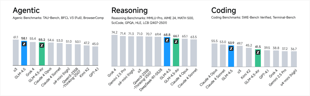 · GLM-4.5(355B)和 GLM-4.5-Air(106B)全面开源,MIT License;