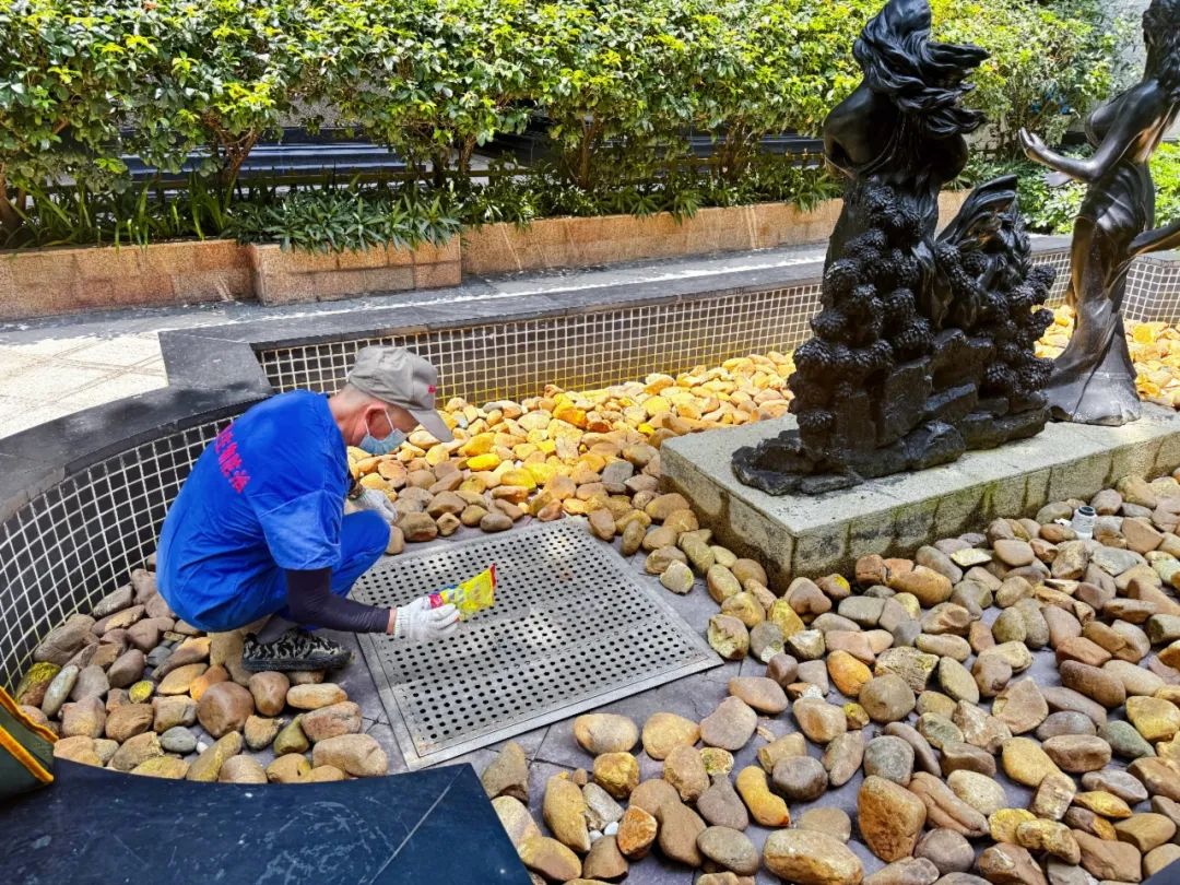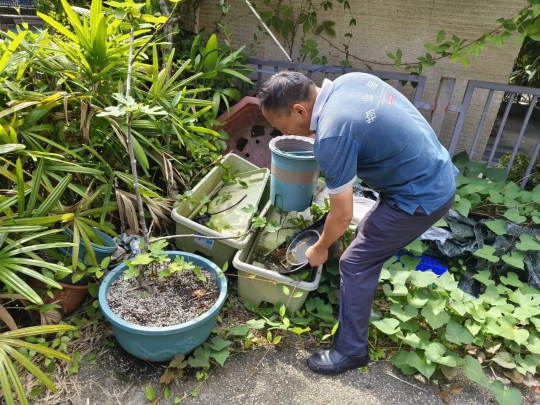 在佛山、广州、深圳等地,针对辖区内在管项目,完成全部排水设施、灭蚊设备等拉网式排查,疏通排水口,检修补强灭蚊灯、诱蚊设备,在高风险区域布设防蚊网,遏制蚊虫滋生源头。