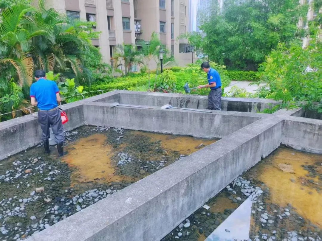 组织专业力量与志愿者,全面打响“清源”攻坚战,清除各类容器(花盆底托、废弃瓶罐、闲置轮胎等)积水,疏通绿化带、屋面天沟、地下车库等易积水点,清理水井污垢、绿植叶面残留,铲除蚊虫孳生“温床”。