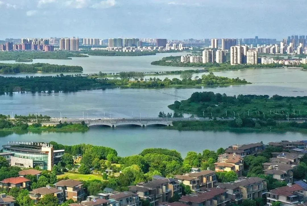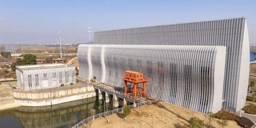 府澴河是长江的重要支流,是孝感“母亲河”,东起府河东大堤,西至三军台汇入槐荫河,全长8.6公里,是孝感的城市文化根脉,承载着老孝感人的深远记忆。在东西湖大堤处可以看到一组极具现代科技感的帆形建筑——这就是东西湖建设年代最久的泵站——李家墩泵站。