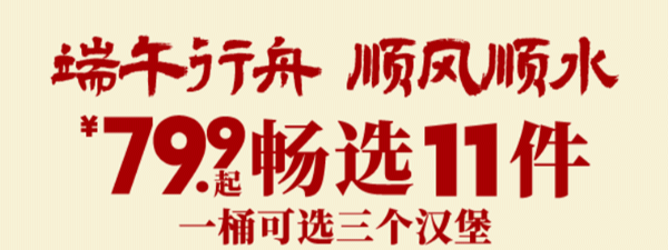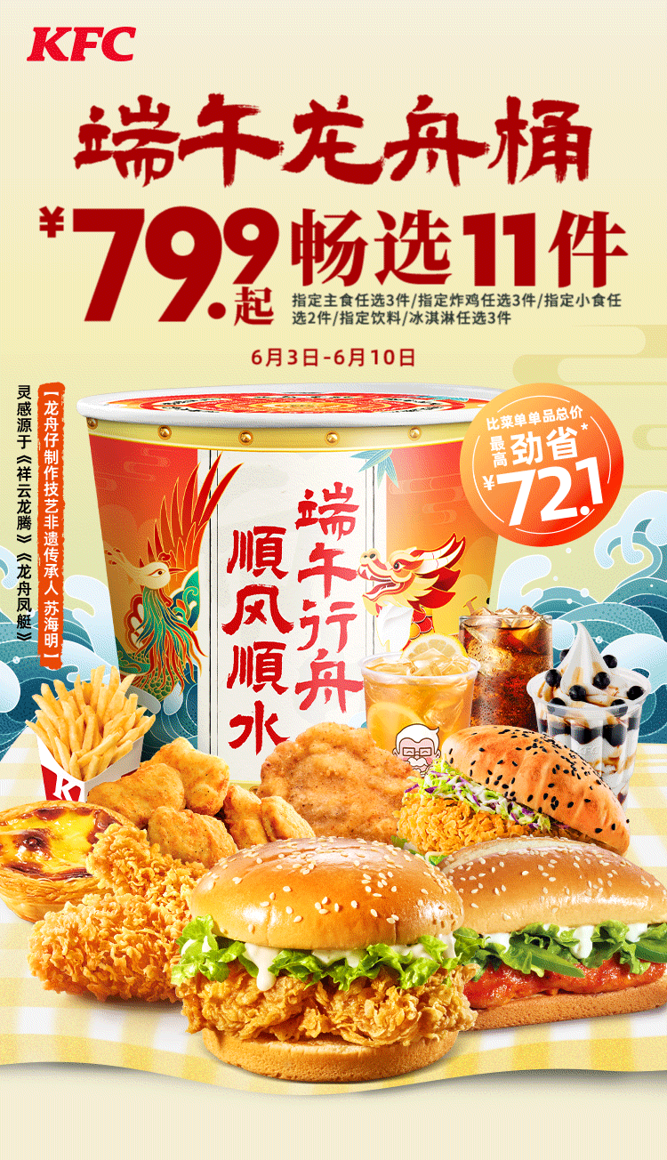 【1F 肯德基】端午龙舟桶上线¥79.9起畅选11件~