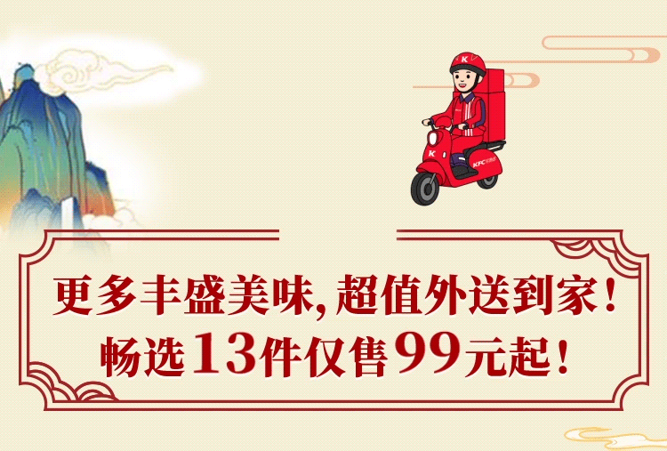 端午龙舟桶自2024年6月3日起至6月10日上市。活动期间,可以指定金额在指定品类中任选指定数量的指定产品,详情以菜单显示为准。端午龙舟桶定制桶包装共计限量100万个,随餐发完即止。海南地区不供应端午龙舟桶定制桶包装,具体包装以实物为准。活动渠道:外送-肯德基超级APP外送到家/外送-肯德基+微信小程序/外送-肯德基支付宝小程序。活动时间:外送9:30-23:00。活动地区:全国。外送部分送餐区域不供应此产品,详情以输入地址后显示的菜单及送餐时间为准。除推广产品外,其他物品仅做装饰目的,图示内容仅供参考。产品、周边、玩具及包装以实物为准。不与其他优惠共享。堂食、肯德基宅急送自有渠道、第三方外卖平台外送渠道、甜品站、团购渠道、企业送渠道及其他渠道的产品组合、价格及优惠活动,以各渠道页面展示为准。