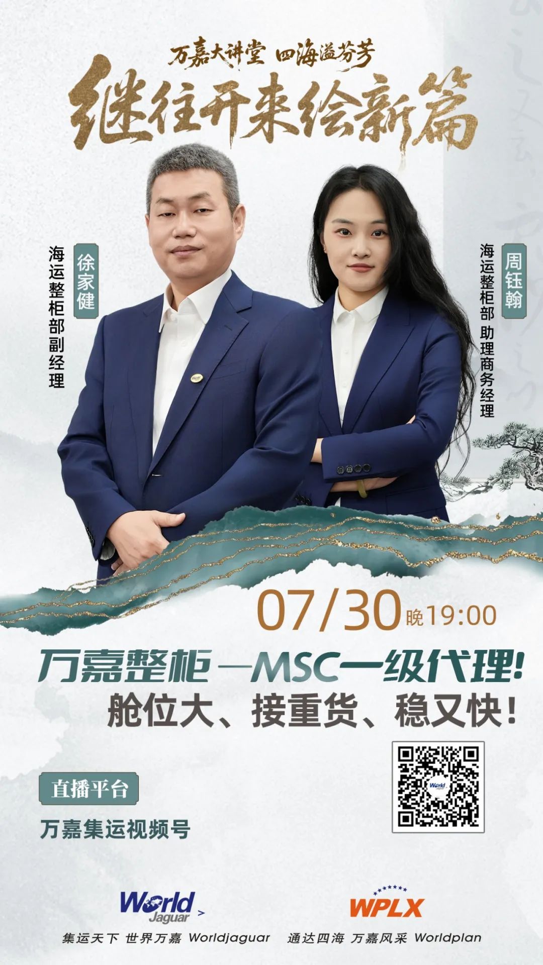 直播预告|万嘉整柜-MSC一级代理!舱位大、接重货、稳又快!