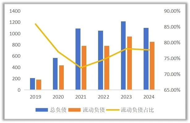 上轮周期后,牧原总负债从211.75亿增至去年1101.12亿,翻近五倍。其流动负债占比从72%升至77.63%,“短债长投”既反映牧原需极致提升资金效率应对竞争,或也因银行忌惮其债务风险,更倾向发放短期借款。