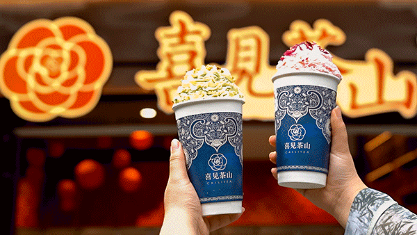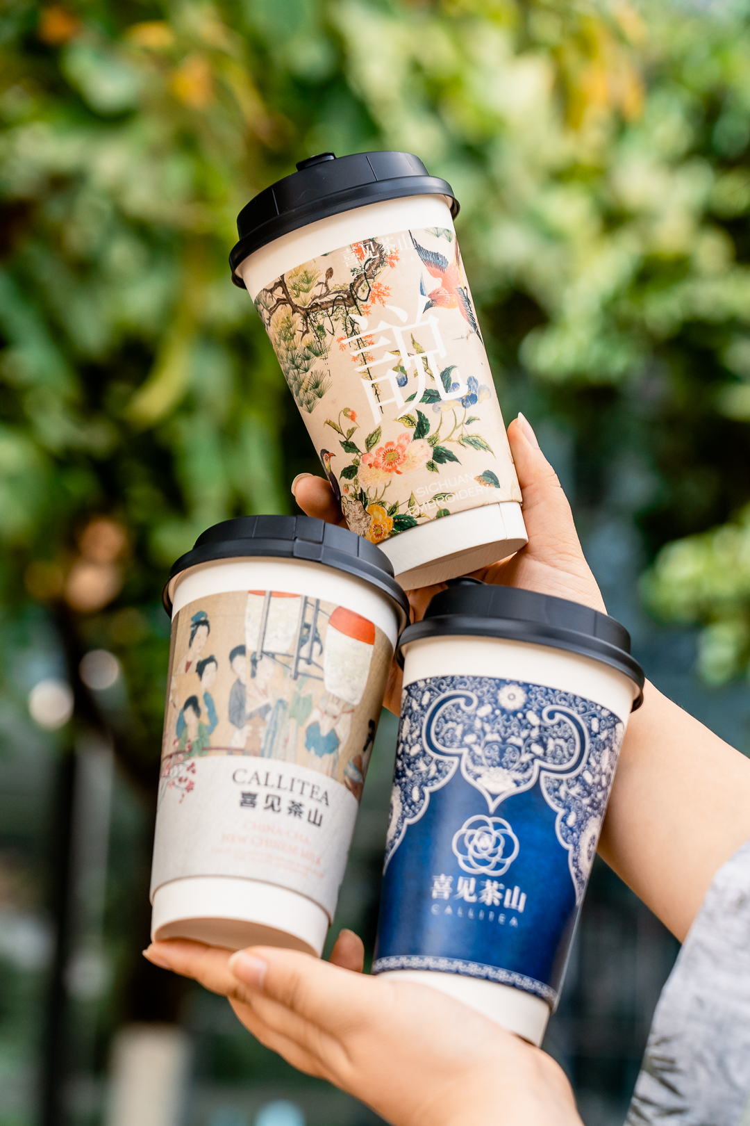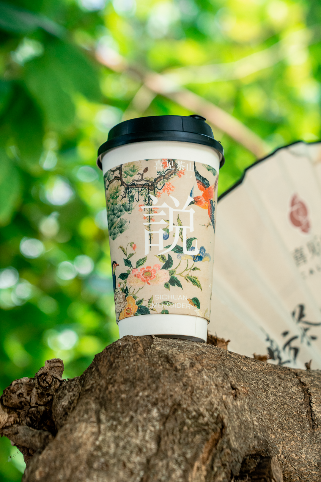 除了店铺的风格充满中式元素,「喜见茶山」的杯身也是别出心裁的,了解传统文化的朋友就会注意到杯身上的花纹样式来自中国非遗文化——蜀绣,蜀绣注重“画意”,如此别致的样式出现在杯身上,妥妥的出街神器。