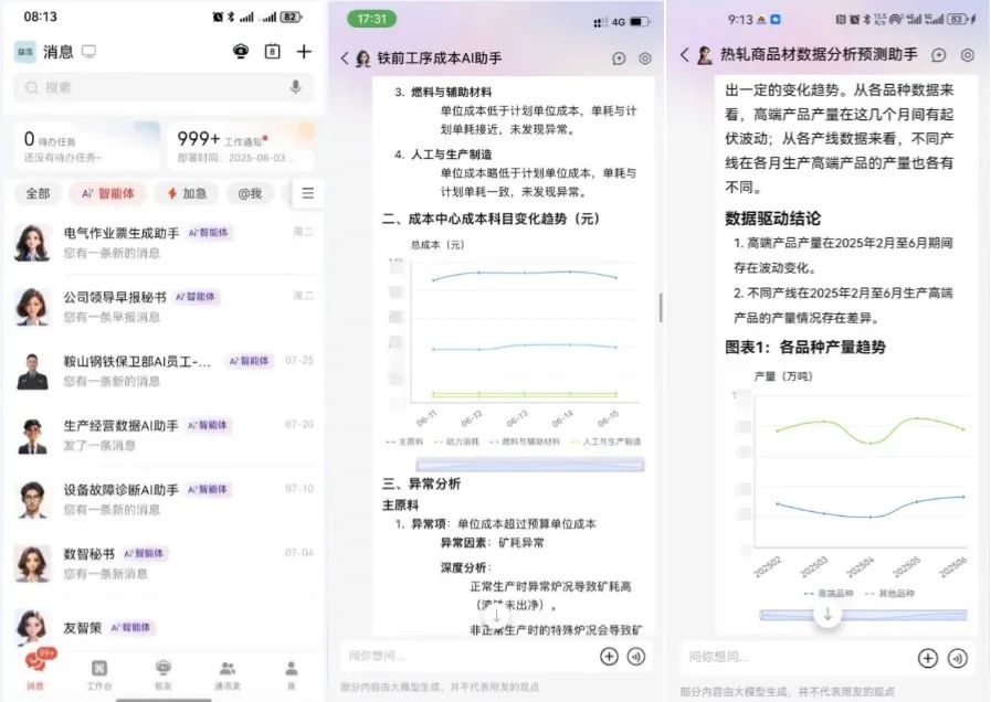 鞍山钢铁集团基于“鞍云智鼎”平台,借助友空间AI协同与智能体功能,打造的“数据+AI”应用已在多个关键业务场景中推广使用,效果显著。