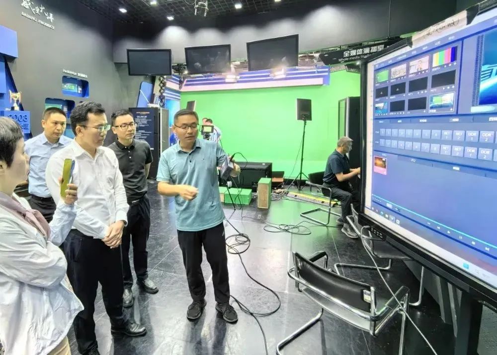 一行人参观中科大洋总部,到产品中心、研发中心、融媒体演播室,考察超高清虚拟AR、LIVE直播生产等轻量化生产模式,观看大洋千机大模型平台能力汇报与展示、大观融媒全云端轻量化直播与制作汇报与展示,并开展业务交流。记者 黄宇 摄/视觉重庆