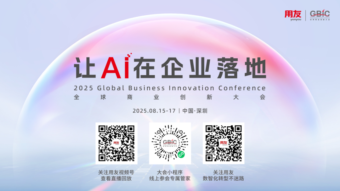 8月15日-17日,由用友主办的2025全球商业创新大会(GBIC·2025)在深圳隆重召开。本次大会以“让AI在企业落地”为主题,汇聚近万名来自中国和海外的商界领袖、企业高管、知名学者、行业专家及媒体代表,深入探讨AI应用在企业落地的挑战与路径、创新产品与解决方案,及领先企业的成功实践,是业界首场超大规模、专题聚焦企业AI应用的顶级盛会。