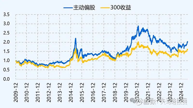 (1)从长期来看,战胜指数是一件不容易的事情。大家不妨先看看作为集专业投资者投资能力之大成的主动偏股基金指数,其在长期相对沪深300全收益指数的超额收益并没有那么夸张。2010年至今,沪深300全收益上涨61.38%,同期主动偏股基金的投资回报为102.04%,16年多时间里主动偏股基金相对沪深300的年化超额仅1.49%。