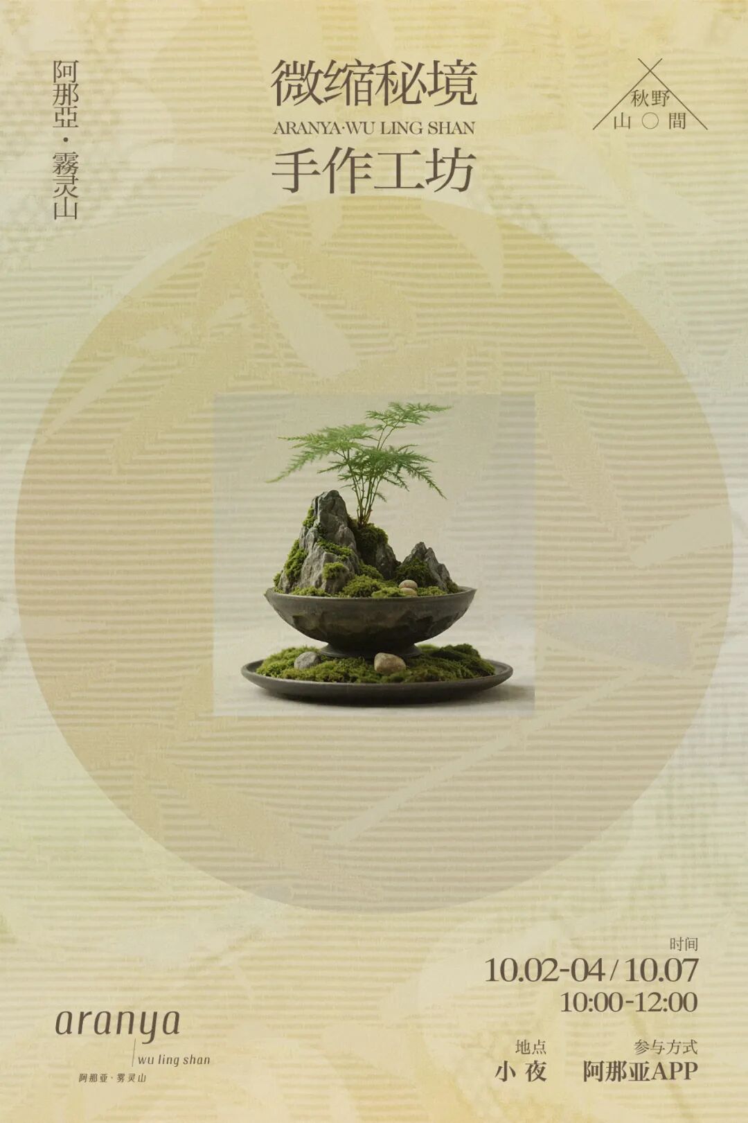 工坊内将备好多种青苔、植料与雅致饰物,伴随着人们层层铺土、轻轻植藓、静静造景,在指尖触碰自然的过程中,习得养护苔盆的清雅心意。