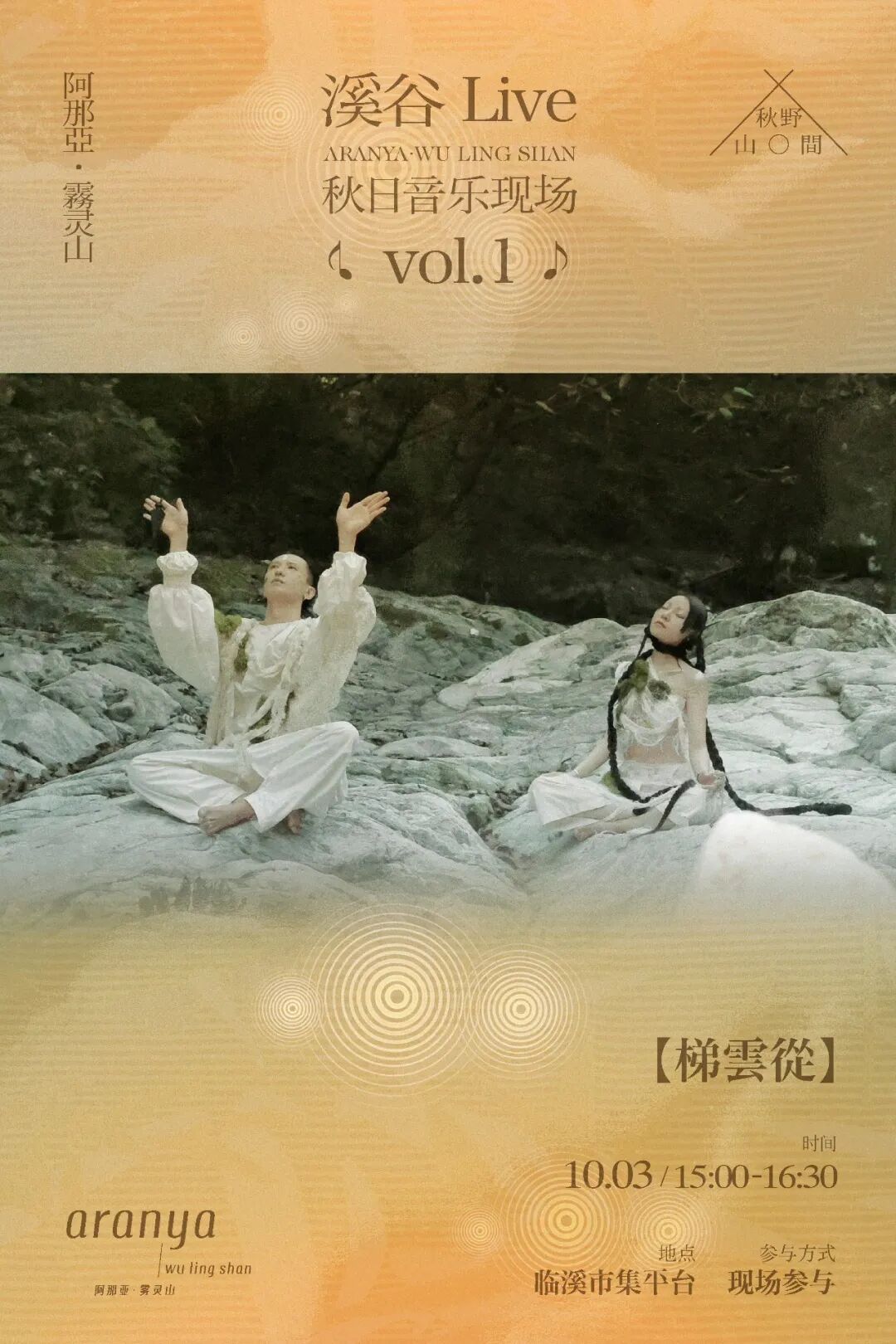 秋日溪涧,清泠澄净。十一假期,连续四日,阿那亚·雾灵山将于临溪市集平台上,邀请风格多元的音乐人们,为山峦与溪谷带来一场又一场声音的礼物。