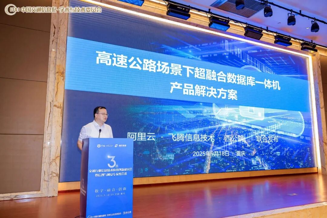 2025年9月18日,第三届交通行业信息技术应用创新研讨会暨信创与网安专家组会议在重庆华商酒店隆重召开。本次大会以 “数字·融合·创新” 为主题,由中国交通信息化·学术与技术委员会、《中国公路》杂志社主办,中国公路学会、重庆高速公路集团有限公司指导;聚焦国家信创战略在交通领域的深化落地,探讨公路水路数字化转型的实践路径。作为大会核心环节,飞腾信息技术有限公司联合阿里云智能、西安公路研究院有限公司(简称“西公院”)共同发布 PolarDB 信创超融合数据库一体机,凭借“开箱即用、全栈适配、安全可靠”的核心优势,成为推动交通行业信创建设从 “试点验证” 迈向 “规模复制” 的关键突破,引发全国各省交通厅、高速集团及行业企业的高度关注。