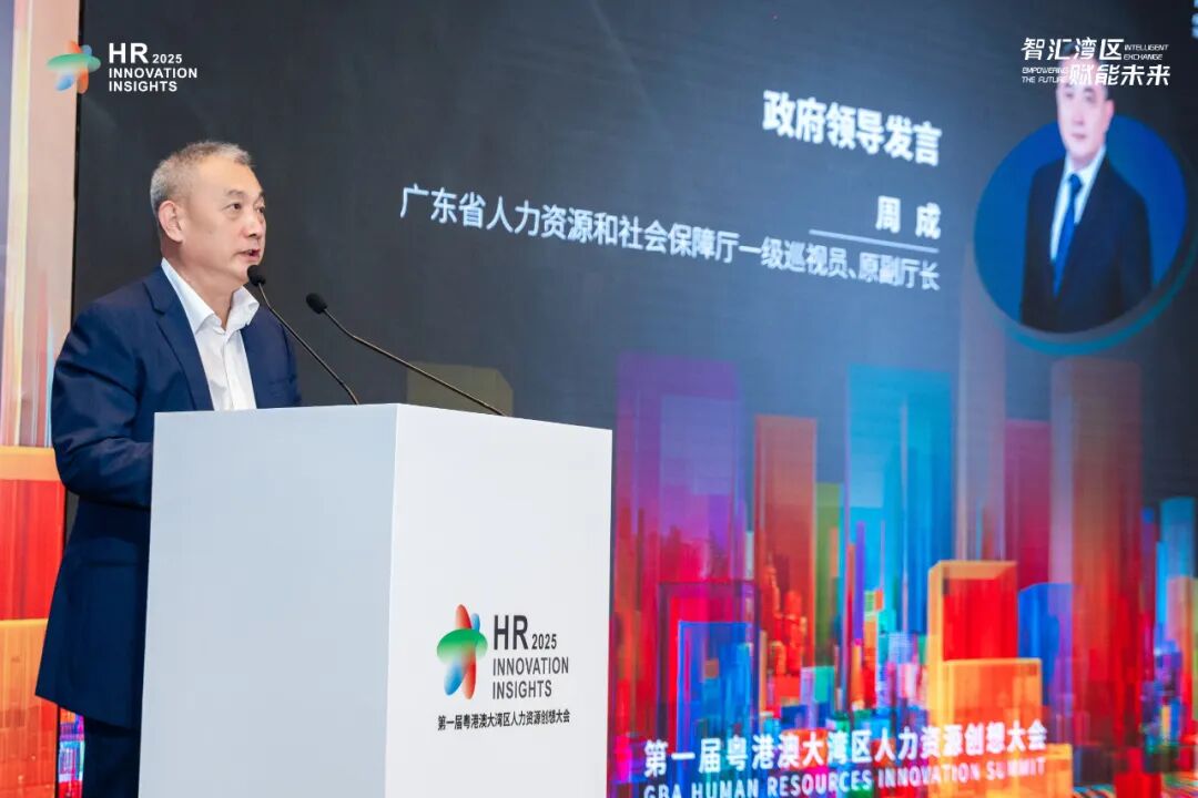 广东省人社厅原一级巡视员、副厅长周成随后发表讲话,从政策视角强调了人力资源作为湾区经济核心要素的战略价值,指出HR行业需在技术变革与产业升级中找准定位,为区域发展提供人才支撑。