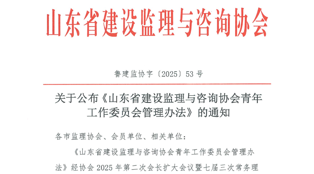 山东省建设监理与咨询协会关于公布《山东省建设监理与咨询协会青年工作委员会管理办法》的通知