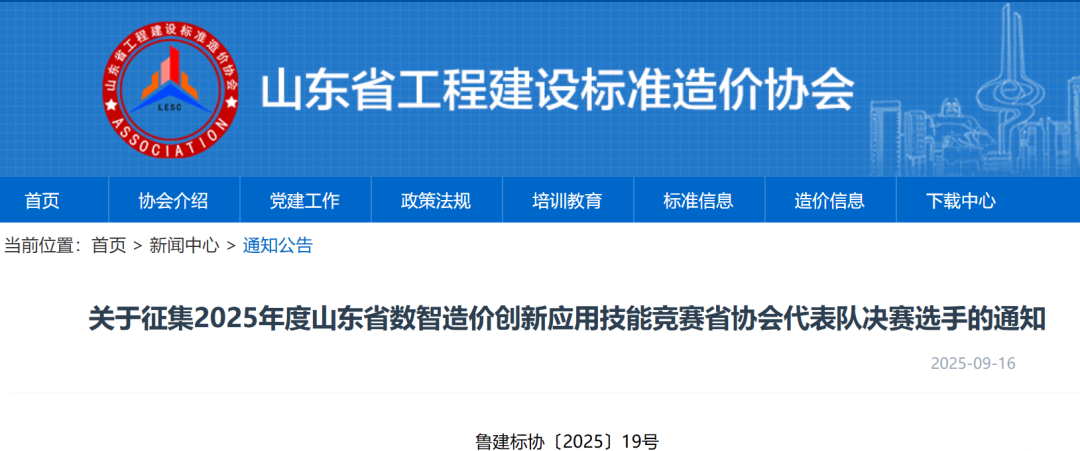 山东省工程建设标准造价协会《关于征集2025年度山东省数智造价创新应用技能竞赛省协会代表队决赛选手的通知》