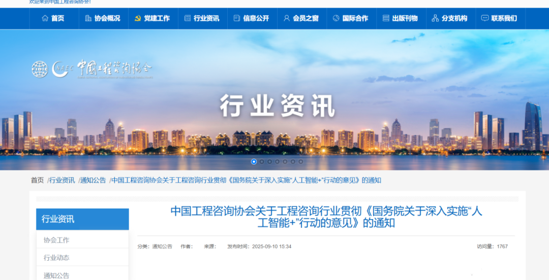 中国工程咨询协会关于工程咨询行业贯彻《国务院关于深入实施“人工智能+”行动的意见》的通知
