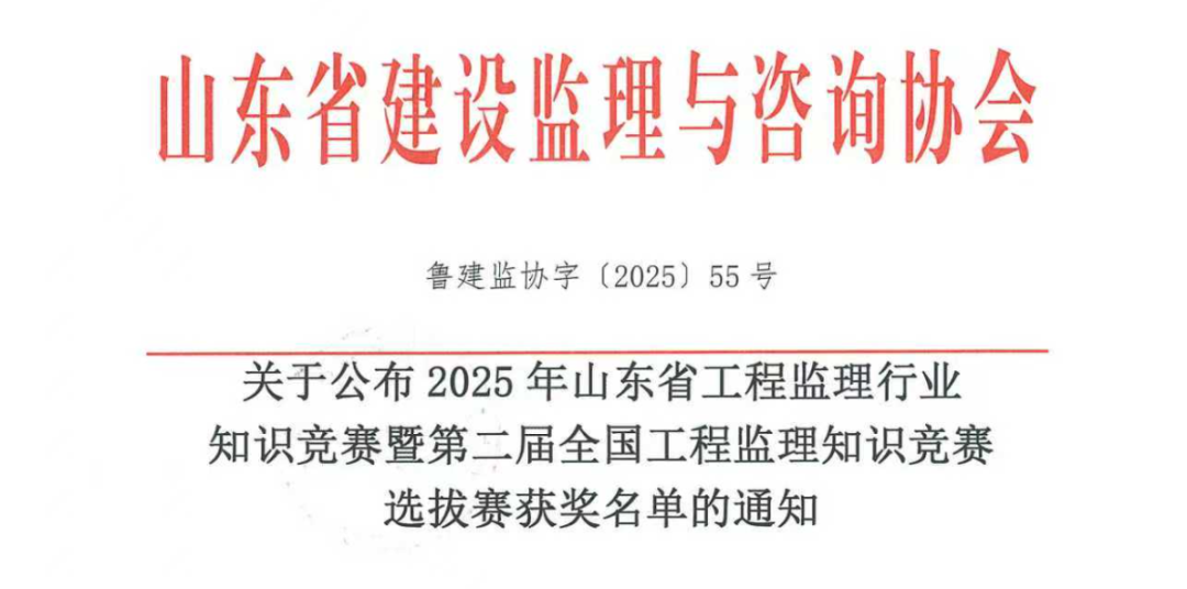 山东省建设监理与咨询协会公布《2025年山东省工程监理行业知识竞赛暨第二届全国工程监理知识竞赛选拔赛获奖名单》,海逸恒安陈卫兴荣获山东省工程监理行业知识竞赛技术负责人组二等奖,司东东荣获山东省工程监理行业知识竞赛青年员工组二等奖。