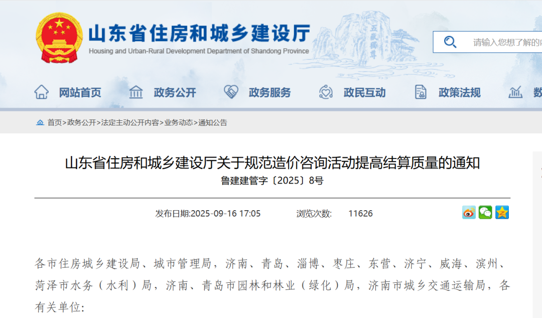 山东省住房和城乡建设厅《关于规范造价咨询活动提高结算质量的通知》
