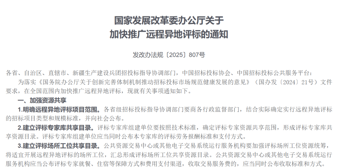 国家发展改革委办公厅《关于加快推广远程异地评标的通知》