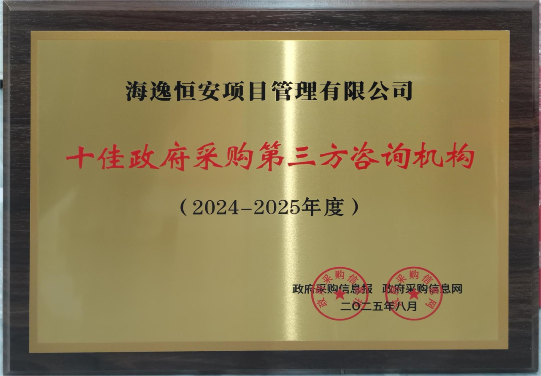 由政府采购信息报主办的20届政府采购监管大会在甘肃兰州成功举办。海逸恒安项目管理有限公司荣膺2024-2025年度“十佳政府采购第三方咨询机构”。