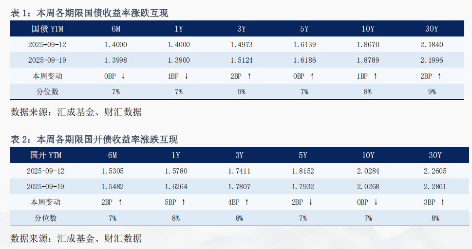 本周各期限国债收益率涨跌互现。其中3Y、30Y收益率上行幅度最大,均为2BP;1Y收益率下行幅度最大,为1BP。本周各期限国开债收益率涨跌互现。其中1Y收益率上行幅度最大,为5BP;5Y收益率下行幅度最大,为2BP。