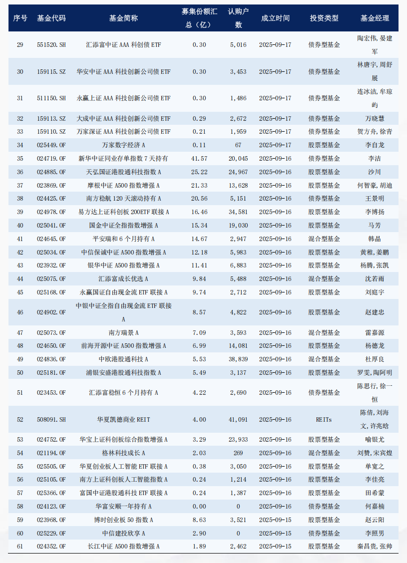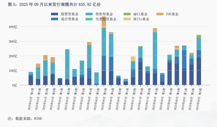 2025年09月以来发行规模共计835.92亿份;其中股票型基金发行规模最高,为439.59亿份。