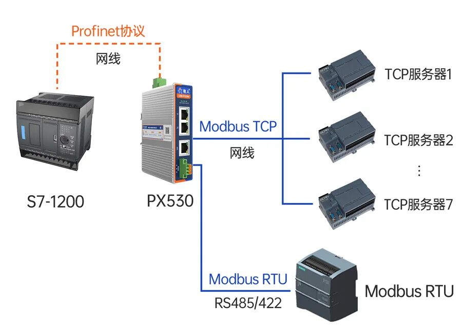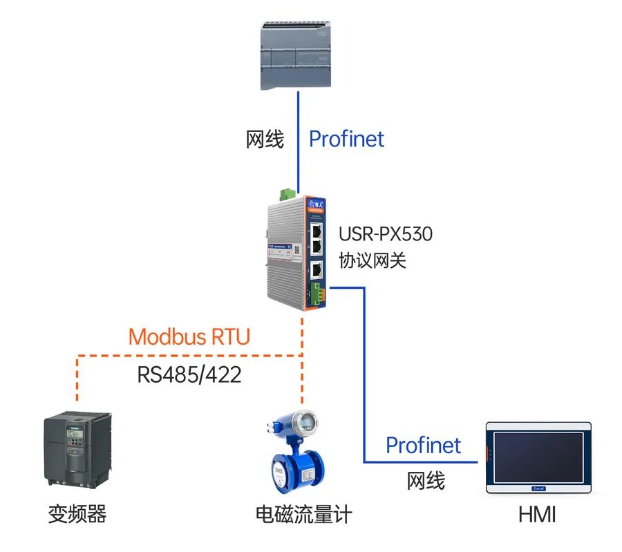 降本增效:传统Modbus协议的设备集成到新的Profinet的控制系统中,无需更换现有设备,省时省力省成本。