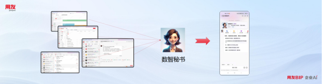 作为"智友"这一企业AI新入口下的重要智能体,"数智秘书"展现出用友对企业协同场景的深刻洞察。协同产品负责人王淑敏生动描述了这一变革带来的体验升级:"数智秘书让每个人都能享受秘书级服务,彻底告别在不同界面间'进进出出'的效率损耗,真正实现'繁事轻办,心无旁骛'。"