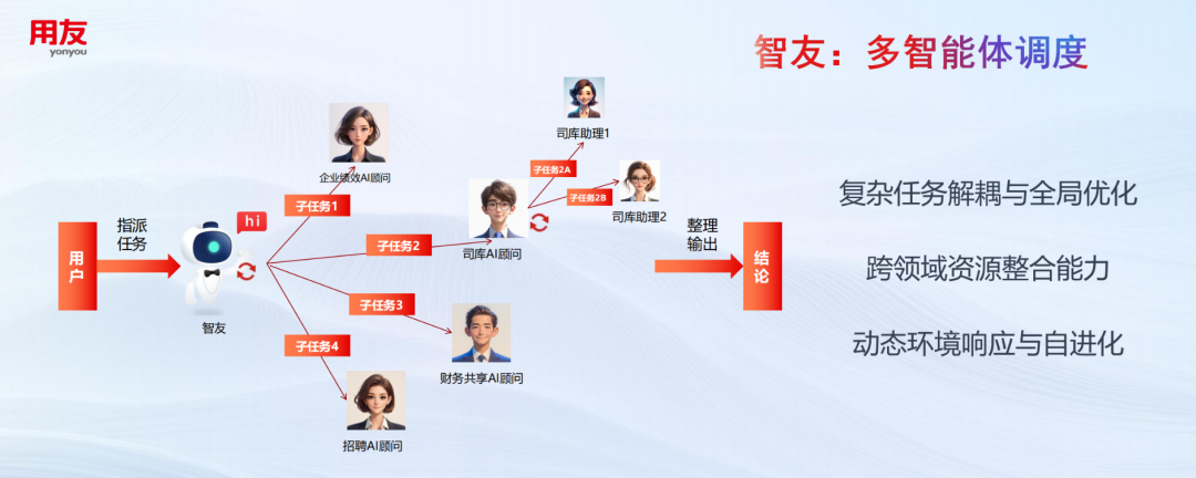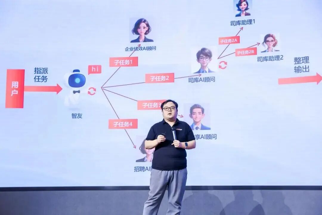 协同平台与协同云AI应用产品负责人汤开轩阐释其核心机制:“智友的多智能体协同网络能将复杂任务自动拆解,并联调度多个智能体协作,把'人工串联多环节'变成'智能并联协作'。”