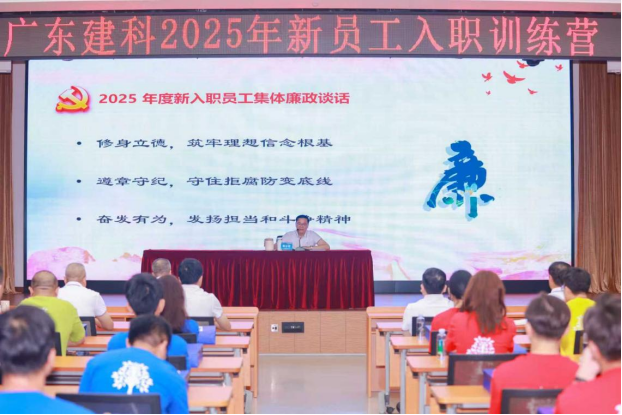 开班仪式上,党委书记、董事长陈少祥以《做一名优秀的建科人——新建科 新力量 新未来》为题,为新员工勾勒出建科的发展蓝图与人才成长路径。他强调,新员工要传承“担当、坚韧、创新”的建科精神,希望大家播撒廉洁的种子,早日成长为支撑建科发展的骨干力量。