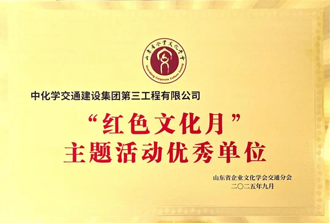为全面贯彻落实党的二十大和二十届二中、三中全会精神,深入学习贯彻习近平总书记关于交通强国、文化强国的重要讲话和重要指示精神,总结、交流、推广我省交通行业党建引领企业文化建设优秀成果和典型案例,增强行业凝聚力,激发发展活力,培育行业品牌,提升行业美誉度,为交通强国、文化强国建设贡献交通行业“山东样板”力量,9月26日至28日,2025山东省交通行业党建引领企业文化建设发展大会在烟台隆重召开。中国化学交建公司所属第三工程公司受邀参会。