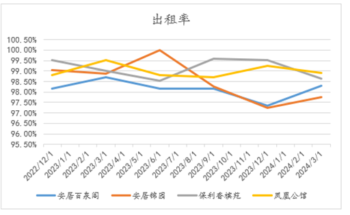 4月末,五只保障房系列REITs的年报和一季报陆续发布,深圳安居REIT的运营数据也展示在我们面前,根据相关报告显示,深圳安居底层保障性租赁住房项目运营稳定,租金维持不变,出租率保持高位,略有波动。