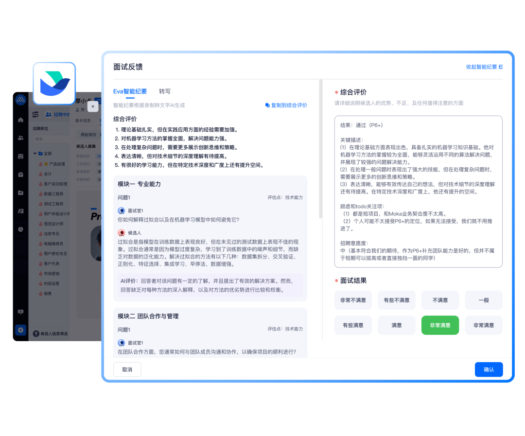 快速生成专业 JD:只需在飞书里简单描述需求,AI 即刻为你生成一份结构清晰、用词专业的岗位描述,自带风险提示,省心更安心。 智能初筛海量简历:AI 依据人岗匹配模型,自动对简历进行初步筛选和评分,并附上推荐理由,帮你从大量简历中快速锁定潜力人选。 面试后自动生成纪要:面试一结束,AI 就能基于对话内容快速生成一份结构化的面试纪要,关键信息清晰呈现,助你高效完成评估。