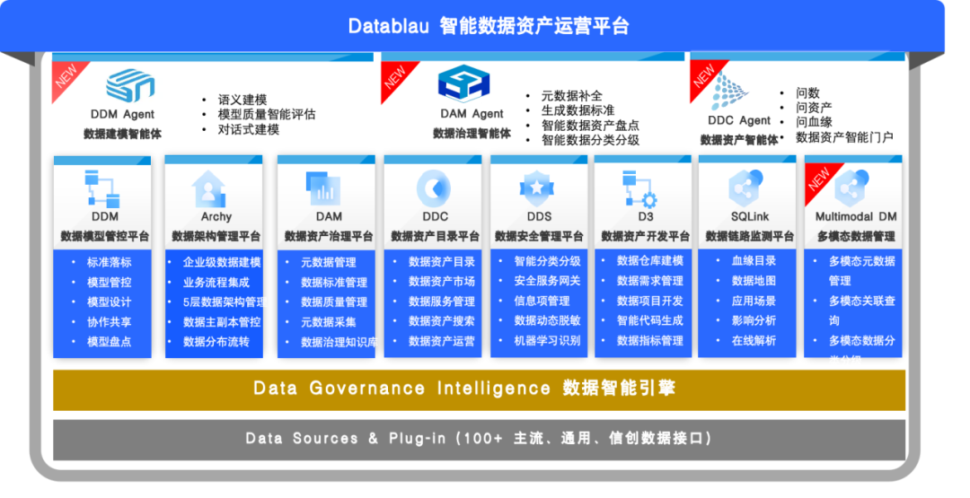 在提升数据管理效率方面,Datablau DDM Dora数据模型智能体作为数据模型设计的"Cursor",能够理解自然语言描述的业务需求,协助快速完成数据实体设计、标准落标、SQL生成与优化等关键任务,可提升数据建模效率80%以上。同时,数据治理智能体与数据资产智能体依托AIC智能引擎,能够根据治理目标自动整理元数据、生成数据标准、核验数据质量、解析数据血缘,极大提升了数据管理的自动化水平。