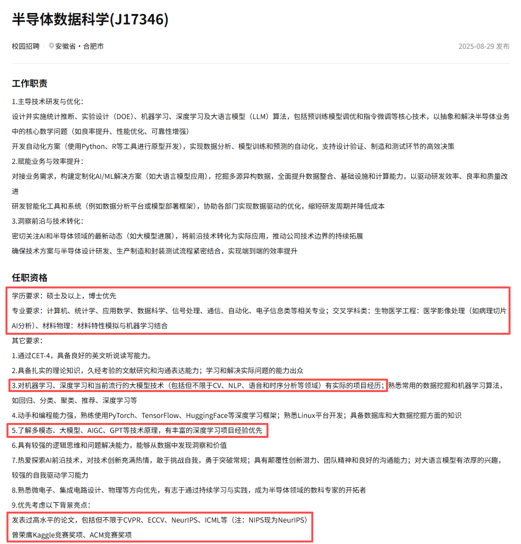 参考以下岗位,学历要求硕士及以上,部分需要博士,掌握岗位相关工具使用、有参赛经历、项目经历或相关实习经历者视为加分项