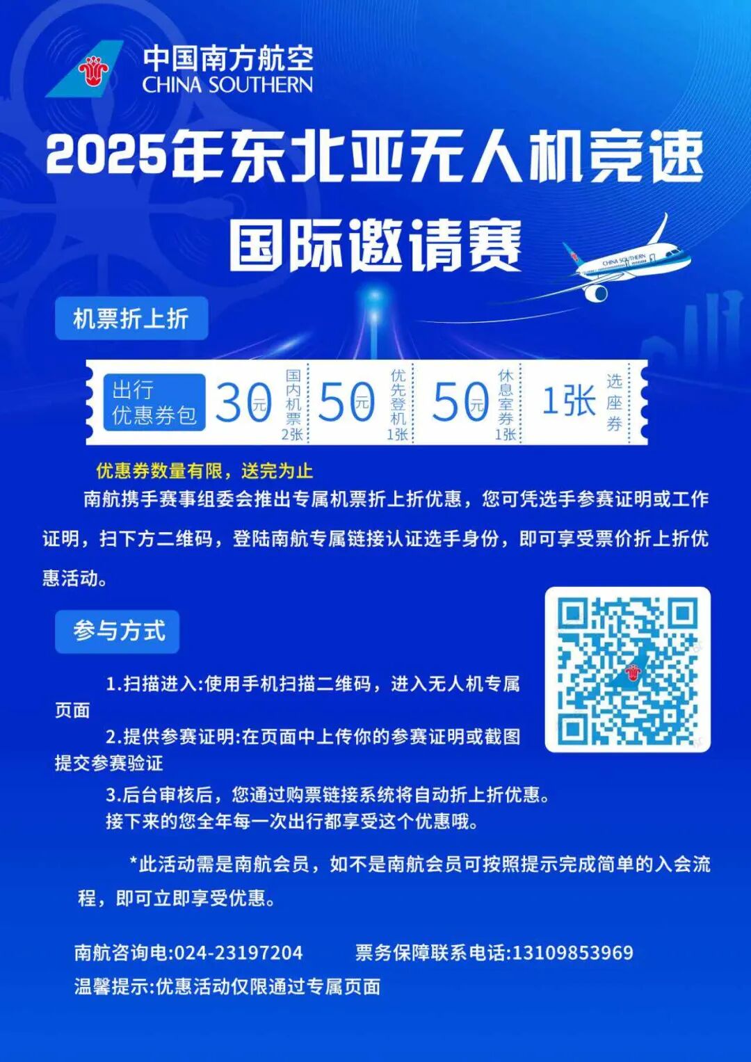 飞行大会现场设有南航展位,各项优惠券的使用规则及机票优惠的具体适用范围,可以咨询现场的南航工作人员。